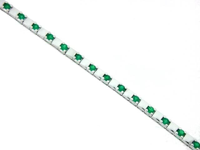 18KT WHITE GOLD COLOMBIAN EMERALD & DIAMOND TENNIS BRACELET