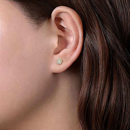 14KT YELLOW GOLD GABRIEL & CO DIAMOND CLUSTER ROUND STUD EARRINGS