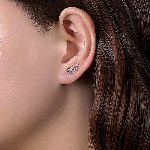 14KT WHITE GOLD GABRIEL & CO BEADED DIAMOND LEAF STUD EARRINGS