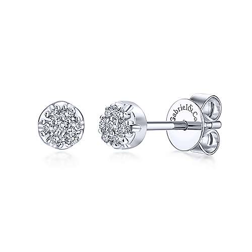 14KT WHITE GOLD GABRIEL & CO DIAMOND CLUSTER ROUND STUD EARRINGS
