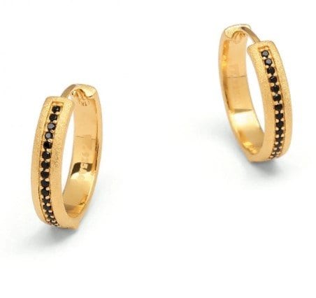GOLD PLATED STERLING SILVER BLACK SPINEL HOOP EARRINGS