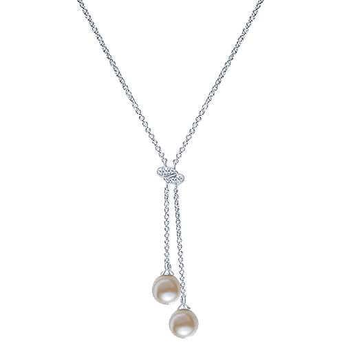 14KT WHITE GOLD GABRIEL & CO DIAMOND & CULTURED PEARL LARIAT NECKLACE