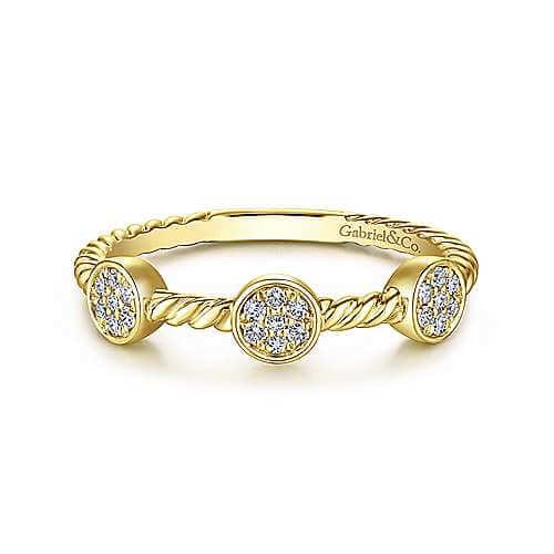 14KT YELLOW GOLD GABRIEL & CO TWISTED ROPE CLUSTER DIAMOND STACKABLE RING